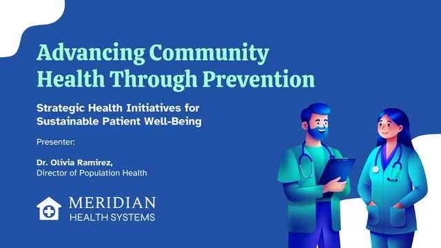 Libérez le potentiel de vos idées d'innovation en santé grâce à notre modèle de présentation de stratégie d'innovation en santé. Ce modèle dynamique et visuellement attrayant est le tremplin idéal pour partager des stratégies de pointe et des projets novateurs dans le secteur de la santé. Avec un design épuré et moderne, il est conçu pour captiver et informer votre public, qu'il s'agisse de parties prenantes, de collègues ou de décideurs. Ce modèle est idéal pour promouvoir vos idées et diffuser votre message ! Vous pouvez le personnaliser en profondeur pour répondre à vos besoins spécifiques : ajoutez des couleurs vives, ajustez les tailles et personnalisez-le avec les photos ou icônes les plus pertinentes, soigneusement sélectionnées dans nos bibliothèques gratuites. Créez une présentation aussi captivante que votre contenu le mérite grâce à nos outils de conception intuitifs sur Venngage. Améliorez vos discussions stratégiques et inspirez l'innovation.