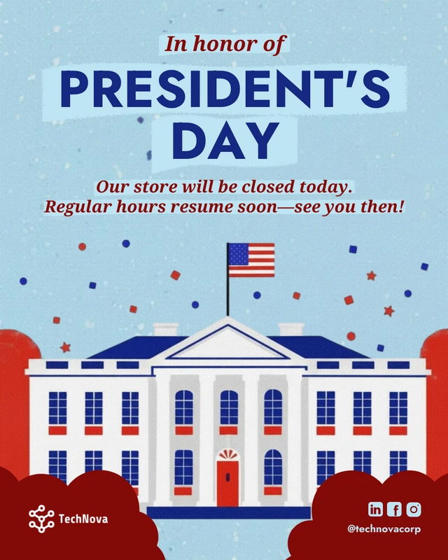Avis de fermeture des magasins pour la fête des présidents (publication Instagram)